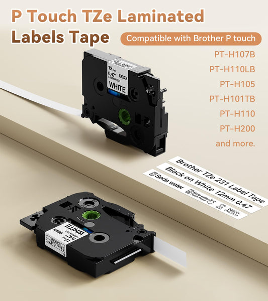 10-Pack Ptouch TZe-231 Compatible Brother Label Maker Tape 12mm 0.47 Inch Laminated White TZe Tape TZ231, for Brother P-Touch PT-D210 PT-D400 PT-H110 PT-D600 Label Maker, 12mm x 8m(0.47inch x 26.2ft)