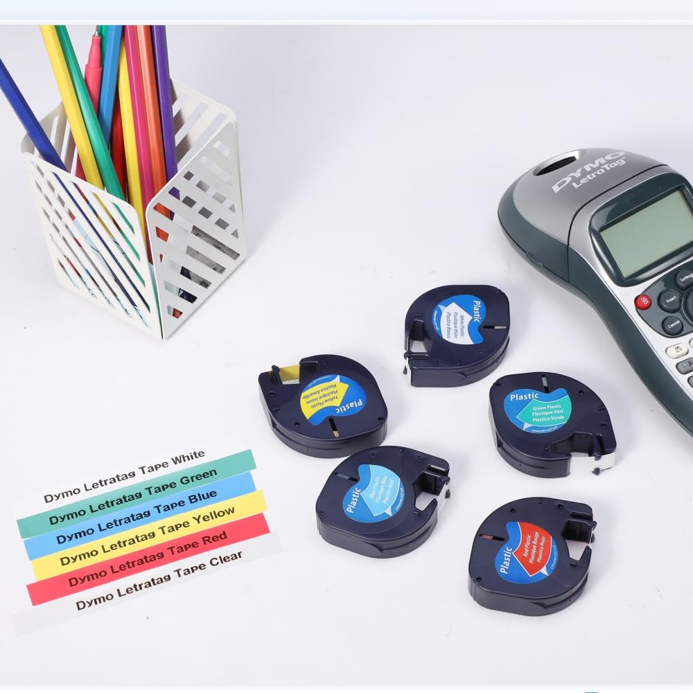 - Paket: 5 Rolles Ersatz kompatibel mit dymo letratag 12mm x 4m bänder kompatibel mit Dymo Letratag Drucker. Farbe: schwarz auf weiß, gelb, rot, blau,grün. Größe: 12 mm x 4 m. Menge: 5